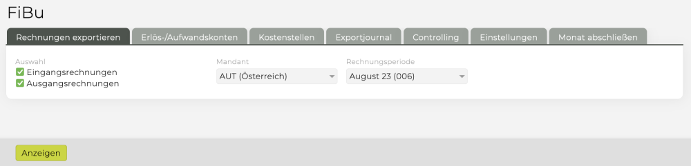 Hier legen Sie fest, welche Rechnungsdaten für welchen Monat exportiert werden sollen.