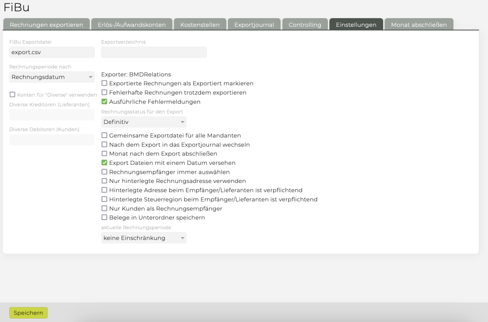 Hier können Sie die allgemeinen Einstellungen für das FiBu-Exportmodul festlegen.